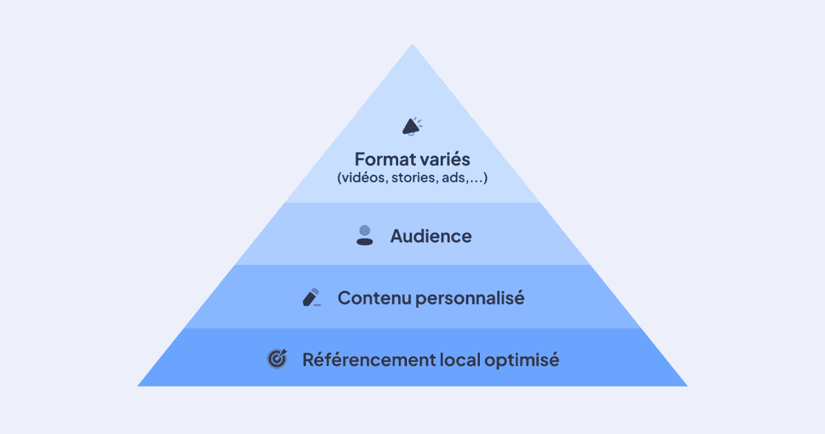C'est là que la pyramide de la visibilité de Regata entre en jeu pour prioriser vos efforts. La pyramide te guide à travers les étapes nécessaires pour atteindre une visibilité optimale :